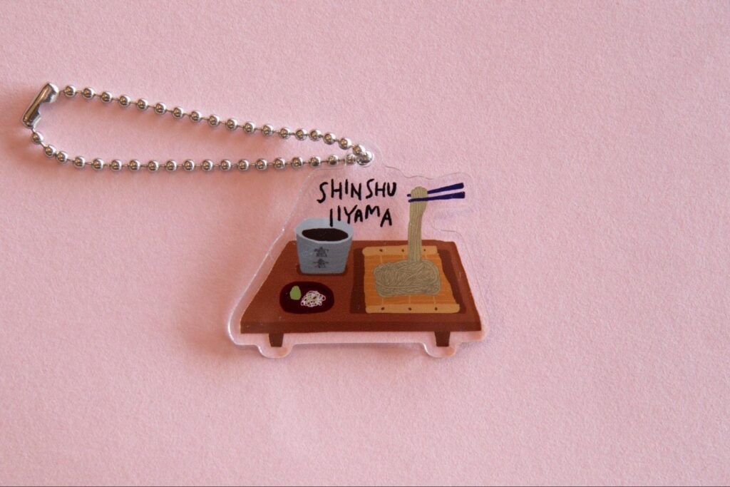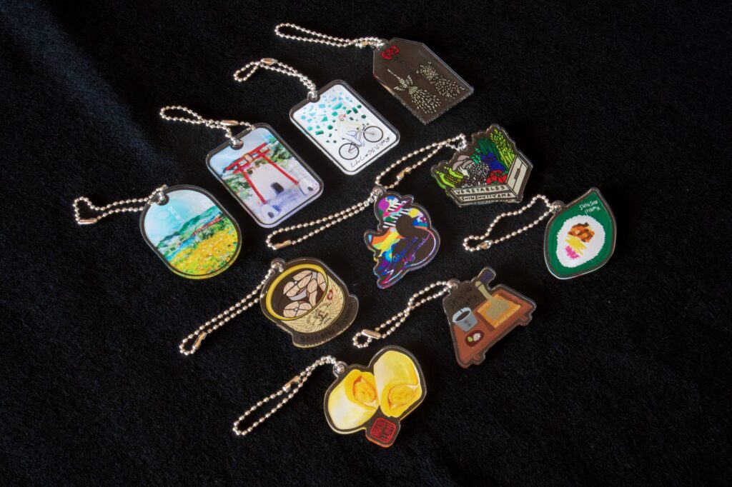 今回メンバーが商品化したのは、飯山の名物や風景、文化をモチーフにしたアクリルキーホルダー(全10種類)。
