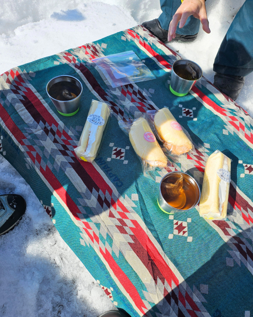 たっぷり歩いたあとは、飯山の冬の名物 「バナナボート」 と温かいドリンクでティータイムをお楽しみいただけます。