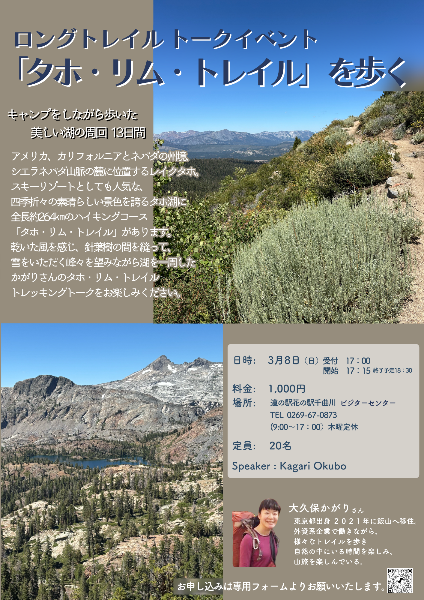 • 内容:タホ・リム・トレイル(TRT)踏破記録のトークイベント