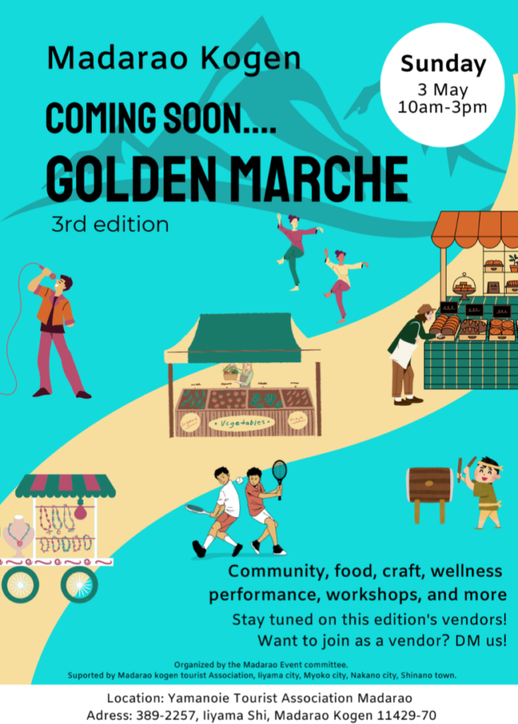 The “MADARAO GOLDEN MARCHE” market event will be held at Madarao Kogen, where the fresh greenery is at its most beautiful.