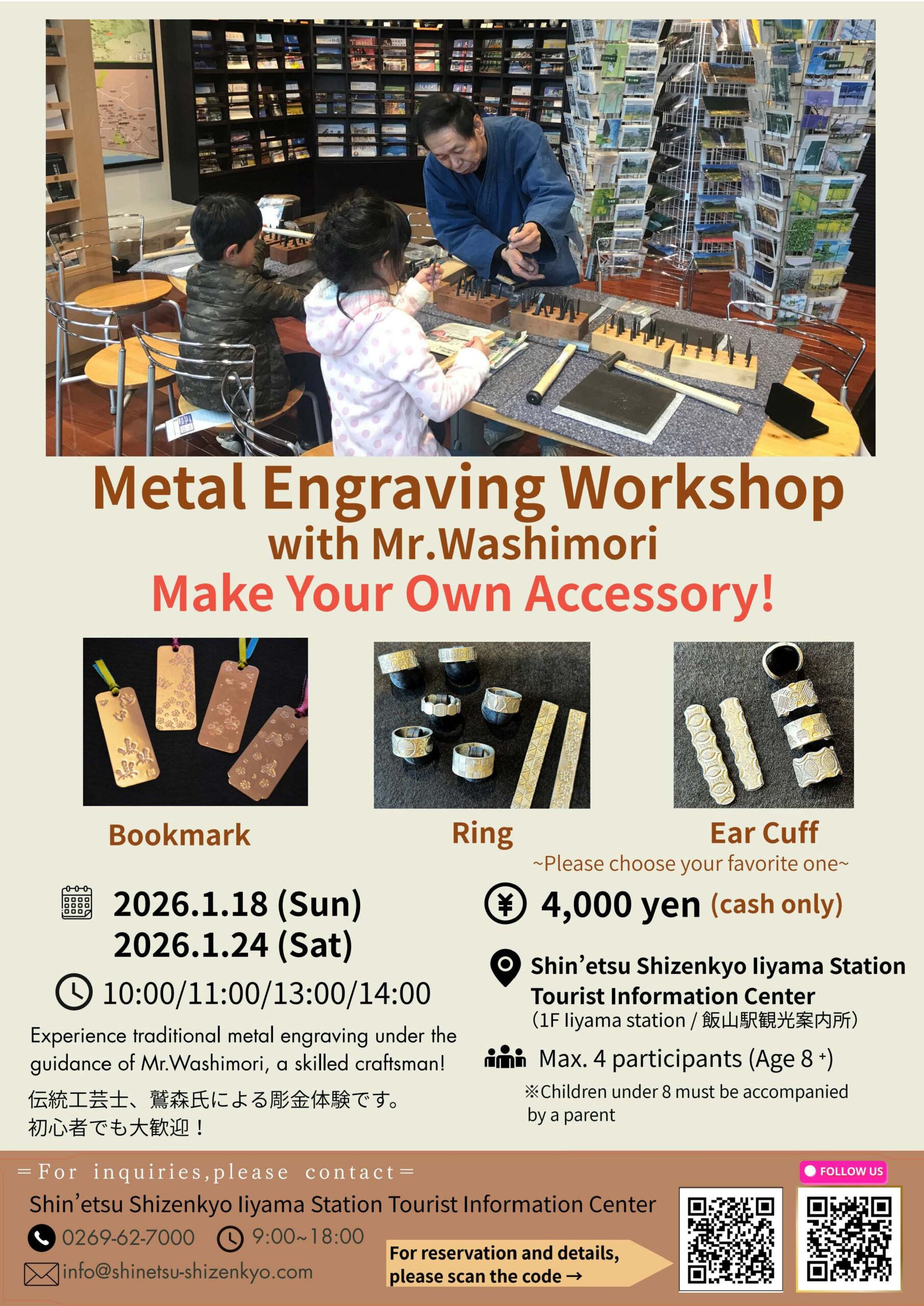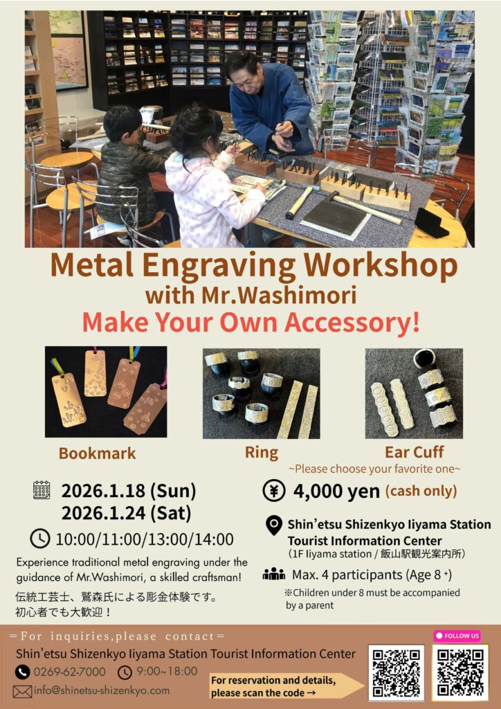 Shin’etsu-Shizenkyo Iiyama Station Tourist Information Center, located on the first floor of Hokuriku Shinkansen Iiyama Station, will offer traditional craft experience programs on selected days in January.