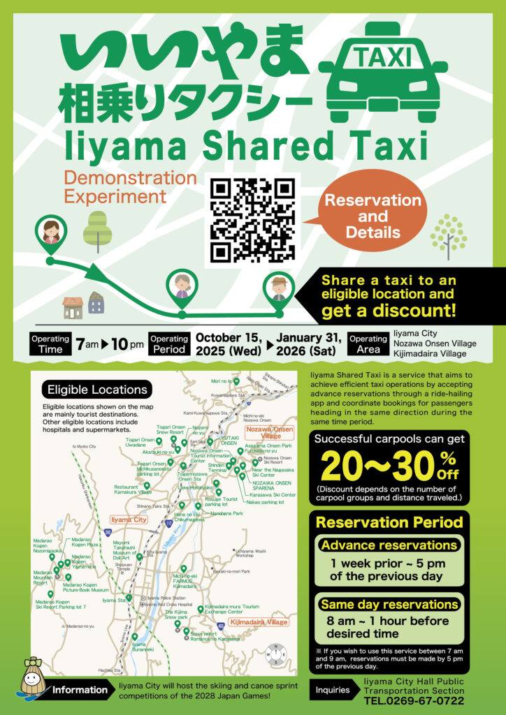 In Iiyama City, a pilot program for shared taxis and ride‑sharing is currently being conducted.