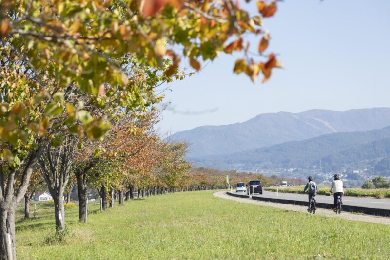 黄金色の田んぼや白く可憐な花をつけるそば畑の風景を楽しみながら、心地よい風に吹かれてサイクリングを楽しんでみては。