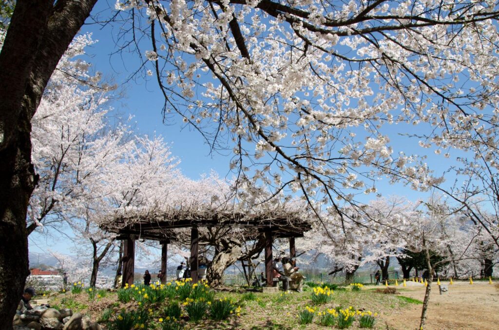 年によっては、遅咲きの桜、菜の花、残雪の山々という雪国らしい風景を見ることができますよ。